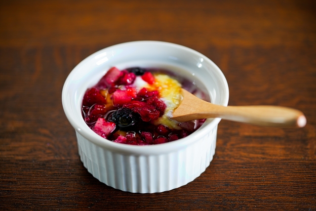 ・ヨーグルトと一緒に食べる(タンパク質も一緒に摂れる)